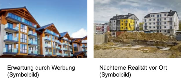 Wählen Sie die Bildpalette sorgfältig und mit Bedacht aus. Vermeiden Sie nichtssagende Fotos wie z.B. Treppenhäuser oder unschöne Hausfassaden. Zur Abwechslung kann auch ein spezielles Detail eine Spannung aufbauen und einladend wirken.
